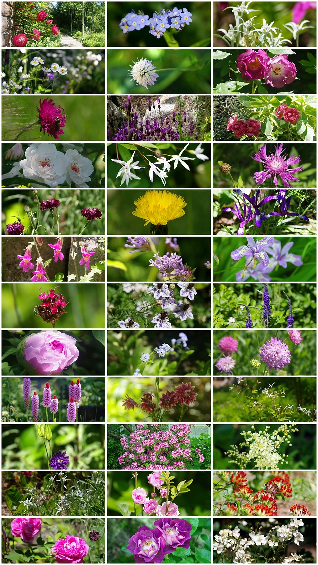 滝から流れ落ちる水の響きを聴きながら、美しい水面を背景に咲く季節の花々のガーデン。